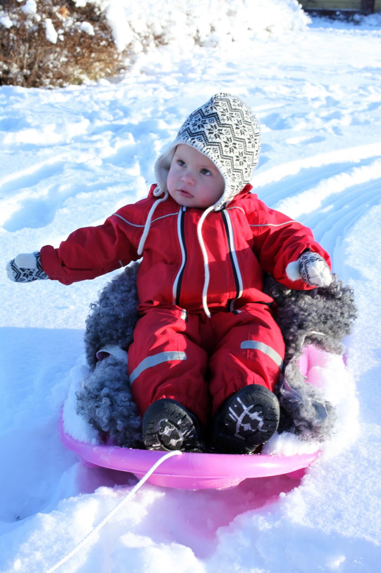 人気の安全ベルト付きスウェーデン製ベイビー用ソリ。